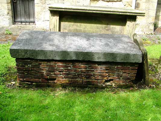 Here lie ye bodies of Mrs Hotham and her daughter Mrs Best the first relict of Mr Hotham - Rector of Wigan who was buried Ap ye 29 1685 other daughter to ye sd Mr Hotham & wife to Charles Best Esq. of Emswell who died Sep 13 1710. Here also lieth ye body of Charles Best Esq. who died Aug ye ? 1719. Verse eroded.